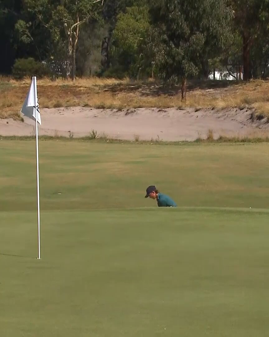Billy Dowling shows impressive skill with a remarkable sand shot during the Webex Players Series, effortlessly escaping a tricky bunker situation.