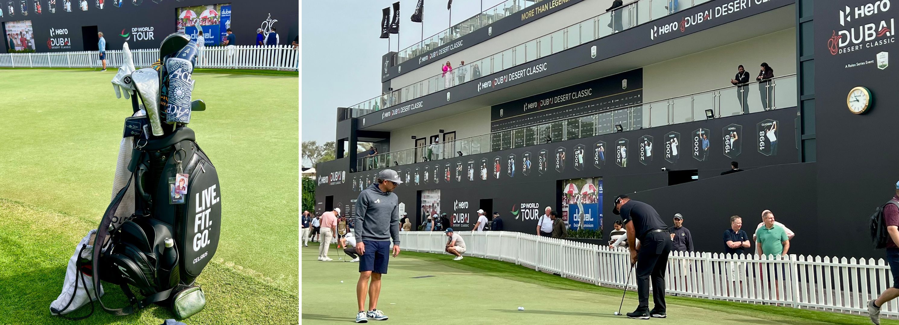 One week later: Hero Dubai Desert Classic. Rolex Series. Emirates Golf Club. Huge grandstands, more world-class players, greater media attention and more spectator interest.
